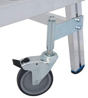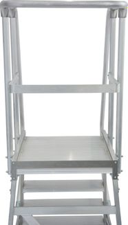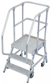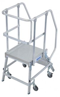 легкая конструкция из устойчивого к коррозии и погодным условиям алюминиевого профиля высокой прочности; небольшая занимаемая площадь идеальна для работы между стеллажами, позволяет легко маневрировать между ними; платформа из рифленого алюминия 600 х 700 мм.;трехстороннее ограждение платформы высотой 1,0 м, с защитной планкой на уровне колен и плинтусом; пластмассовые наконечники на стойках;4 поворотных ролика (Ø 125 мм), 2 из них с тормозами, обеспечивают легкую эксплуатацию и безопасное использование; геометрические, прочные соединения между перилами платформы и поручнями повышают безопасность и надежность; поставляется в разобранном виде с прилагаемой подробной инструкцией по сборке для быстрого монтажа на месте;продукт сертифицирован в строгом соответствии с ГОСТ Р 58752-2019 и DIN EN-131.