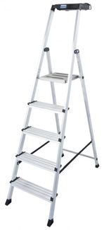 Односторонняя алюминиевая стремянка SECURY, 5 ступенек c высокой дугой безопасности, с большой противоскользящей площадкой и ступенями Komfort: