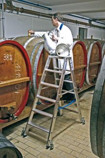 - STABILO Двусторонняя стремянка, 2х3 ступеньки с роликами в каталоге Лестницы складские в России;