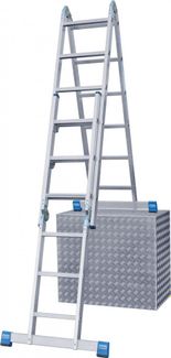 Шарнирная алюминиевая лестница может устанавливаться на ступенях, применяться в виде приставной или универсальной лестницы или как стремянки, а так же в качестве рабочей платформы (в сочетании с помостом TeleBoard):