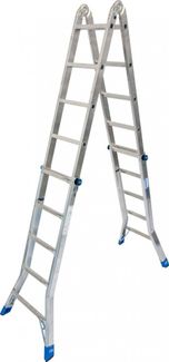 Четырехсекционная алюминиевая шарнирная лестница STABILO 4х5 перекладин применяется как двусторонняя стремянка, как приставная лестница или как две отдельные двусторонние стремянки: