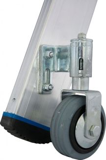 Передвижная односторонняя алюминиевая стремянка STABILO 5 ступенек с роликами с 4 самоблокирующимися роликами 80 мм, с автоматикой „Roll/Stop“ предназначена для профессионального применения в стесненных условиях.