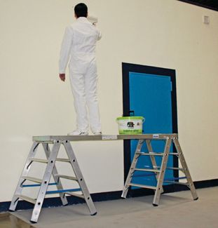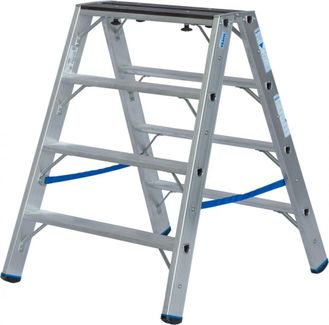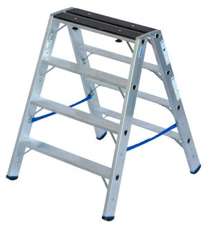 Стремянка STABILO с деревянной накладкой 2х4 ступеньки Профессиональная алюминиевая стремянка с практичными функциями. Используется в качестве двухсторонней стремянки или подмости: