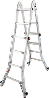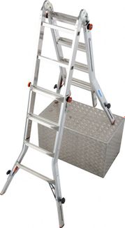 Четырехсекционная телескопическая алюминиевая шарнирная TELEVARIO лестница 4х5 перекладины: применяется как двусторонняя стремянка, как приставная лестница и как две отдельные двусторонние стремянки:
