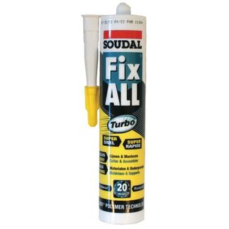 - Soudal Клей-герметик белый жёсткий картридж Soudal Fix All Turbo 290 мл по выгодной цене 1 283 р. руб.;