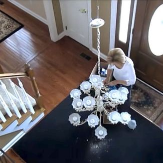 Грузоподъемность лифта-подъемника составляет до 50 кг. Конструкция позволяет поднимать люстру на высоту до 4 м. Это полностью безопасное устройство. Механизм лебедки устроен таким образом, что при ее опускании размыкается контакт и люстра плавно опускается на тросе. Вы меняете лампочку, поднимаете люстру, и контакт возобновляется.