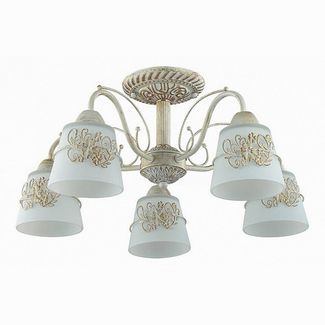Бренд - Lumion (Италия), Серия - Veva, Высота, мм - 260, Диаметр, мм - 510, Размер упаковки, мм - 250x300x300, Количество плафонов - 5, Масса нетто, кг - 5.90, Возможность подключения диммера - можно, если установить лампу накаливания, Общее кол-во ламп - 5, Лампы в комплекте - отсутствуют, Лампы - компактная люминесцентная [КЛЛ] ИЛИнакаливания ИЛИсветодиодная [LED], цоколь E14; 220 В; 40 Вт, , Цвет плафонов и подвесок - белый с рисунком, Цвет арматуры - белый с золотой патиной, Тип поверхности плафонов и подвесок - матовый, Тип поверхности арматуры - матовый, Материал плафонов и подвесок - металл, стекло, Материал арматуры - металл, Класс электробезопасности - I, Общая мощность, Вт - 200, Степень пылевлагозащиты, IP - 20, Стиль - классический, Тип лампы - компактная люминесцентная [КЛЛ] ИЛИнакаливания ИЛИсветодиодная [LED], Тип цоколя лампы - E14, Напряжение питания лампы, В - 220, Максимальная мощность лампы, Вт - 40, Форма плафонов - конусная, Направление плафонов - вниз, Диапазон рабочих температур - комнатная температура, Размеры, мм - 510x260, Страна производителя - Италия, Дополнительные параметры - способ крепления к потолку - на монтажной пластине, Гарантия, месяцы - 24 Работаем круглосуточно!Возврат 21 день. Страна производства: Италия Есть доставка.