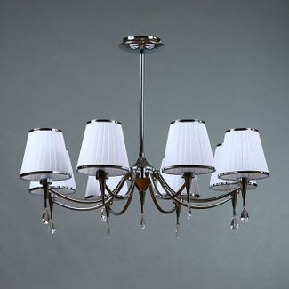 Артикул: MA 01625CA/008 Chrome Серия: 01625 Тип светильника: Люстра Количество ламп: 8 Мощность, W: 40 Цоколь: E14 Тип ламп: Энергосберегающие (не входят в комплект) Диаметр, мм: 720 Высота, мм: 800 Цвет: Хром/Белый Плафон: Ткань Минимальная сумма заказа 2000 рублей