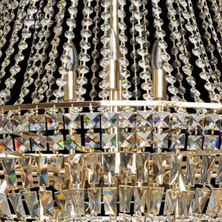 Роскошные переливы, помпезный, торжественный стиль - люстра из коллекции «Диана» - настоящее произведение искусства. Металлическое основание цвета французского золота в сочетании с декоративными элементами из высококачественного хрусталя различных видов огранки создают ощущение, что перед нами драгоценность, воплощение которой требует поистине филигранной работы. Люстра театрального типа для помещений с высокими потолками, состоит из нескольких ярусов, что придает неповторимое и торжественное величие, такой предмет интерьера достоин царских покоев. Множество мерцающих капель хрусталя создают великолепную, многогранную, непередаваемую игру света. Снизу люстра декорирована хрустальной чашей. Хрусталь скреплен в хрустальные нити с помощью папильонов в форме маленьких бабочек. Если вы ценитель эксклюзивной роскоши, лучшего варианта, чтобы подчеркнуть свой безупречный вкус, не найти. Площадь освещения порядка 72 кв.м. Минимальная сумма заказа 2000 рублей Страна производства: Германия