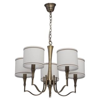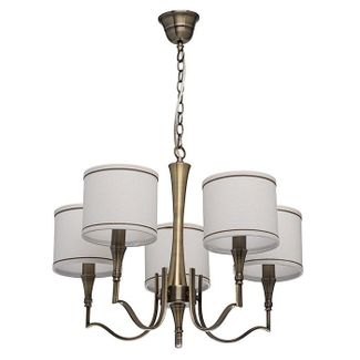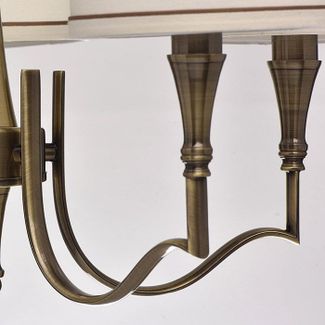 Сложно найти более элегантное решение для интерьера, чем люстра из коллекции «Конрад». Основание из металла благородного цвета античной бронзы плавно переходит в изящно изогнутые рожки. Фактурные тканевые абажуры натурального бежевого оттенка удачно дополняют тон основания, а коричневый кант эффектно завершает композицию. Интересно, что светильник можно использовать и без абажуров: тогда будут видны источники света в виде свечей. Стильная люстра в духе нео-классики будет гармонично смотреться в современном интерьере. Минимальная сумма заказа 2000 рублей Страна производства: Германия