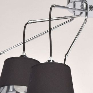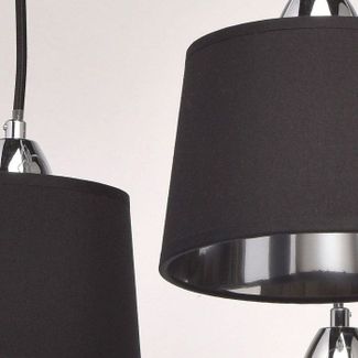 Люстра MW-Light 103011308 станет прекрасным дополнением для гостиной, спальни. В производстве светильника применены следующие материалы: Металлическое основание цвета хром.Текстильные абажуры черного цвета. Декор -черная текстильная оплетка. В конструкции осветительного прибора используются лампы мощностью 40W, их количество - 8, с цоколем E27. Габаритные размеры светильника в мм: высота - 500, диаметр - 870. Светильник выполнен в современном оригинальном дизайне.Необычное решение для крепления плафонов в виде свободно висящих черных шнуров, длину которых можно регулировать и придавать светильнику разные формы.Оригинальные абажуры черного цвета с внешней стороны и цвета хрома с внутренней стороны создают мягкое рассеянное освещения и необыкновенный отражающий, привлекающий внимание эффект. Есть возможность регулировать положение светильника по отношению к потолку, это дает возможность размещать светильник в помещениях с разной высотой потолков.Абажуры изнутри защищены акриловым покрытием, что увеличивает срок службы светильника.Модель выполнена в 2-х вариантах по количеству ламп, что позволяет разместить ее в разных по величине помещениях.Рожки, декорированные черной текстильной оплеткой, придают светильнику дополнительную оригинальность и превращают его в арт объект. Минимальная сумма заказа 2000 рублей Страна производства: Германия
