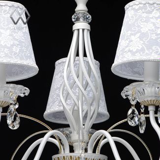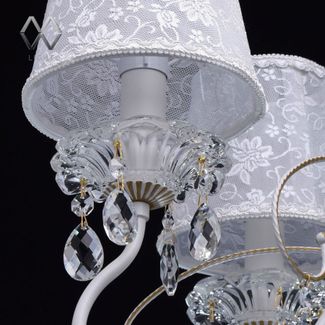 Романтичный характер люстры из коллекции Августина отражен в плавных линиях арматуры и нежной цветовой гамме. Августина станет украшением прованского интерьера или уютной зоны отдыха в средиземноморском стиле где мягкий свет от текстильных белых абажуров создаст прекрасную атмосферу для уединения. Металлическое основание окрашено в матовый белый цвет и декорировано патиной для создания эффекта старения. Центральная часть люстры выполнена в виде ритмично изогнутых металлических прутьев. Дополнительное очарование светильнику из коллекции Августина придаёт наличие стеклянных розеток с хрустальными подвесками. Минимальная сумма заказа 2000 рублей Страна производства: Германия