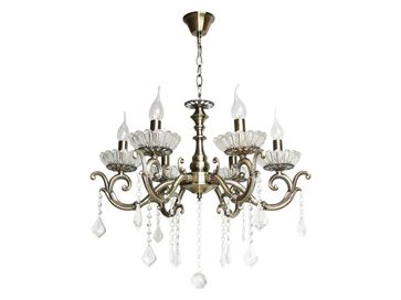 Потолочная люстра KL.1973-6-P АВ станет настоящим украшением интерьера гостиной в классическом стиле. Очаровательный дизайн модели с декоративными свечами и хрустальными подвесками погружает в атмосферу старинного замка.<br>