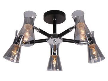 Потолочная люстра MD.6559-5-S CH+BK покорит неординарным исполнением и поможет создать в интерьере источник уютного приглушенного света. Модель искусно сочетает матовую поверхность черного основания, стальной блеск и тонированное стекло прозрачных плафонов.<br>