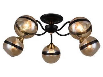 Потолочная люстра MD.3595-5-S BK+FGD — эффектное решение для интерьера гостиной в современном стиле. Плафоны из тонированного стекла янтарного цвета сделают освещение мягким и уютным.<br>