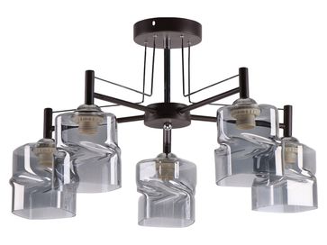 Потолочная люстра MD.4237-5-S BR+CH станет ярким акцентом в интерьере современной гостиной. Тонированные плафоны необычной изогнутой формы притягивают взгляд и создают на стеклянной поверхности оригинальные блики.<br>