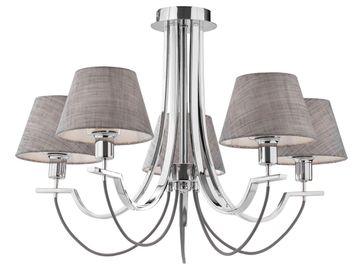 Люстра Фелиса FR5019CL-05CH — сочетание элегантности и современного стиля. Изящная конструкция оттенка хрома дополнена классическими абажурами из серого текстиля, которые делают освещение мягким и уютным. Модель отлично подойдет для помещений с низкими потолками.