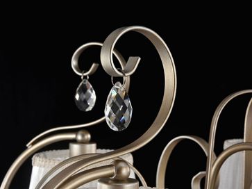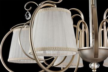 Элегантная люстра Симона FR2020-CL-06-BG покорит красотой исполнения. Изящное основание нежного кремового цвета декорировано восхитительными хрустальными подвесками. Плафоны-абажуры из текстиля с окантовкой искусно завершают конструкцию модели.<br>