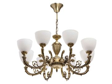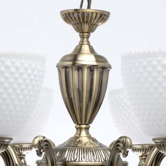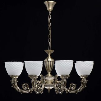Люстра Фелиция 114010308 — классика в современном исполнении. Конструкция модели, декорированная вензелями, и белоснежные плафоны с ромбовидным орнаментом притягивают взгляд и акцентируют внимание.<br>