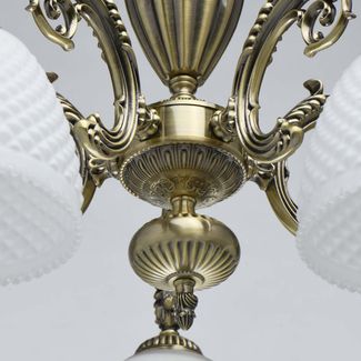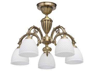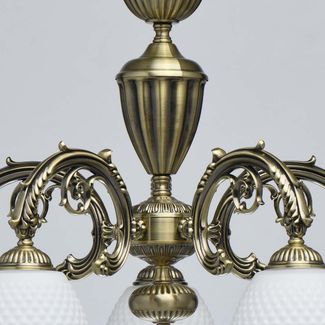 Люстра Фелиция 114010405 — классика в современном исполнении. Конструкция модели, декорированная вензелями, и белоснежные плафоны с ромбовидным орнаментом притягивают взгляд и акцентируют внимание.<br>