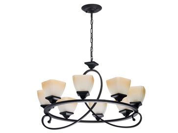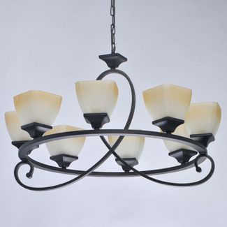 Люстра Замок 249018808 выполнена из кованого металла. Оригинальные плафоны из матового стекла с градиентным цветовым покрытием создадут теплое и мягкое освещение. Крепление люстры позволяет регулировать высоту.<br>