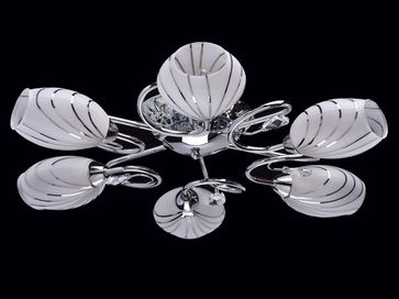 Характеристики: <br> Материал арматуры: металл.<br> Материал плафонов: стекло.<br> Диаметр: 670 мм.<br> Площадь освещения: 18 кв. м.<br> Максимальная мощность лампы: 60 W.<br> Подходит для натяжных потолков.<br> <br>