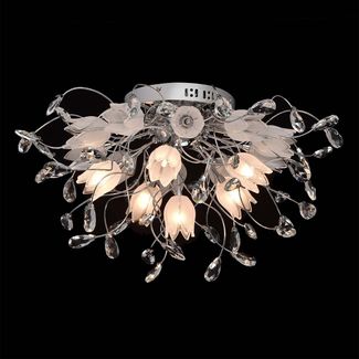 Изящная люстра Подснежник 294014416 выполнена в стиле арт-деко. Сочетание стеклянных плафонов и отделки декором из хрусталя привлекает взгляд. Небольшая высота модели позволит украсить любое помещение.<br>