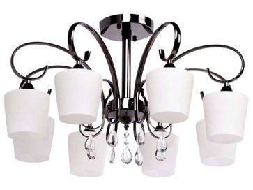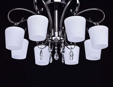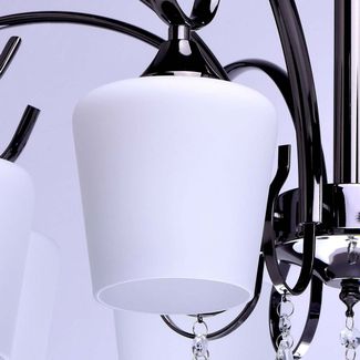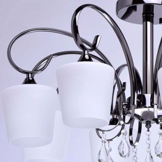 Люстра Блеск 315011308 — стильное решение для интерьера как в классическом стиле, так и в современном. Основание цвета черного никеля гармонично дополняют плафоны из белого матового стекла. Декор в виде хрустальных подвесок завершает интересный образ.<br>
