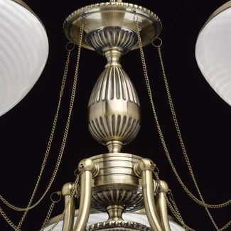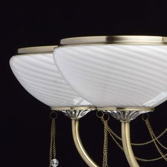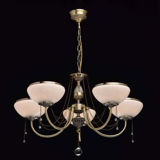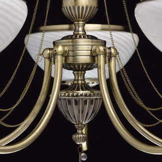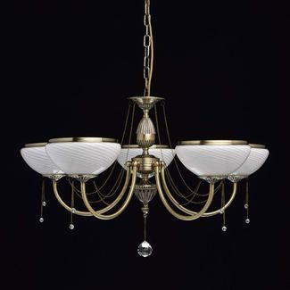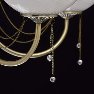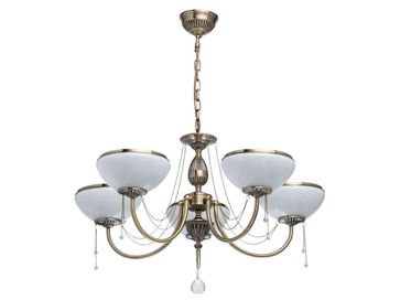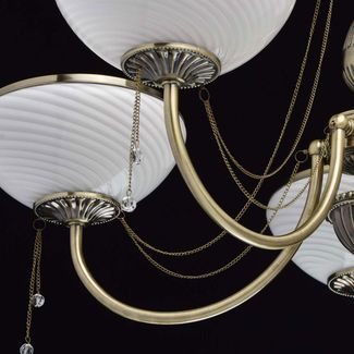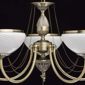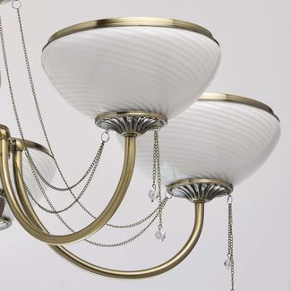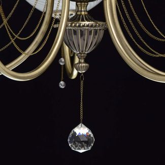 Люстра Фелиция 347019105 — роскошная модель, оформленная в классическом стиле. Белоснежные плафоны из матового рифленого стекла создадут приятное и уютное освещение. Металлические цепочки с подвесками из хрусталя завершают изящный образ модели.<br>