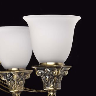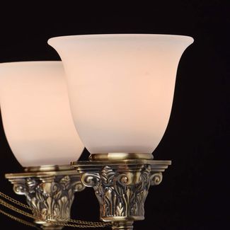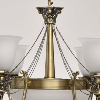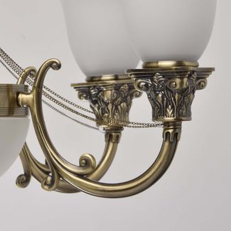Люстра Фелиция 347019609 — элегантная модель, выполненная в классическом стиле. Металлическую конструкцию в виде изогнутых элементов с цепочками завершают белоснежные плафоны, изготовленные из матового стекла. Люстра регулируется по высоте.<br>