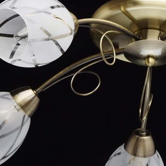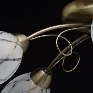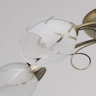 Люстра Грация 358011505 идеально подойдет для помещений с невысокими потолками. Изящный дизайн основания золотого цвета и стеклянные плафоны с геометрическим рисунком гармонично дополняют друг друга, придавая модели элегантность и шарм.<br>