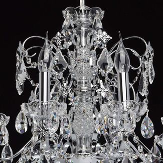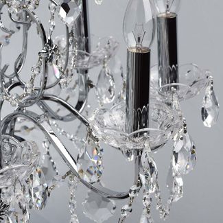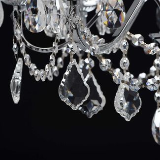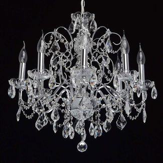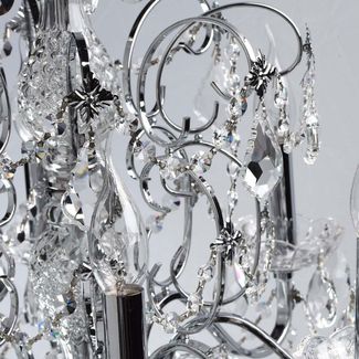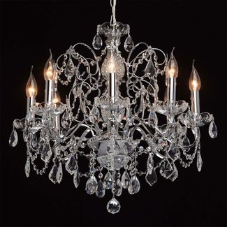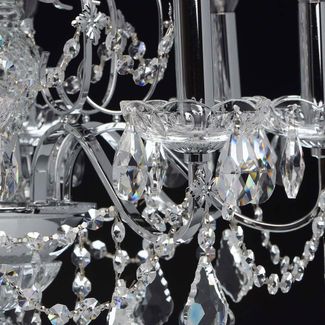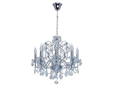 Люстра Каролина 367013408 — роскошная классическая модель, которая станет изюминкой интерьера. Металлическое основание в цвете хром декорировано прозрачными хрустальными элементами. Люстру можно отрегулировать на нужную вам высоту.<br>