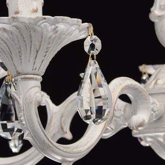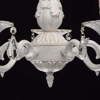 Люстра Аврора 371012605 притягивает взгляд и завораживает. Изящные очертания конструкции, декорированные золотой патиной, дополняют резные узоры и великолепные хрустальные подвески. Источники света в виде открытых свечей придают люстре особый шарм.<br>