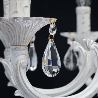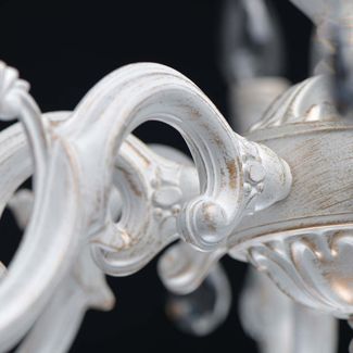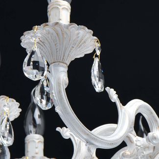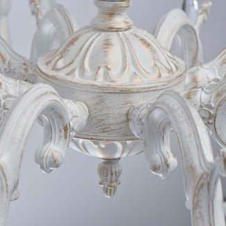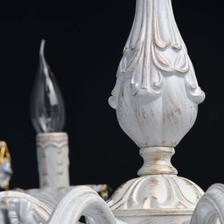Люстра Аврора 371015008 станет элегантным акцентом интерьера современной квартиры. Модель универсального белого цвета с эффектом золотой патины декорирована хрустальными подвесками, а оригинальный резной рисунок и источники света в виде свечей придают люстре особый шарм.<br>