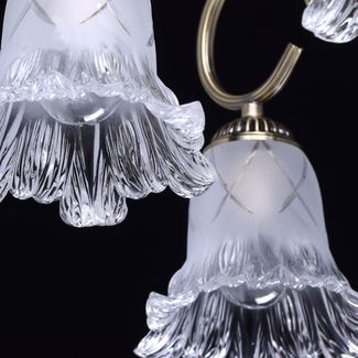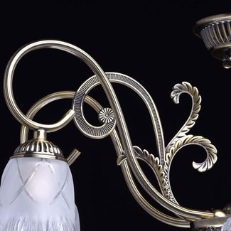 Современная люстра Моника 372011906, выполненная в оригинальном стиле, завораживает своей красотой. Плафоны изготовлены из матового стекла и напоминают распустившиеся колокольчики, а бронзовая арматура полноценно завершает цветочный образ.<br>