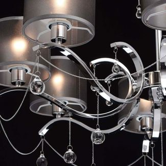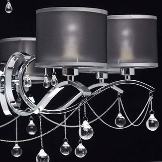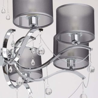 Люстра Федерика 379019108 добавит в интерьер помещения шарма и элегантности. Плафоны цилиндрической формы изготовлены из полупрозрачной серой органзы, конструкция модели декорирована металлическими цепочками и хрустальными подвесками.<br>
