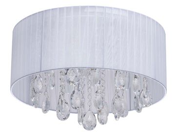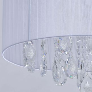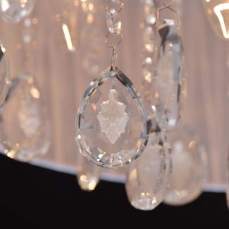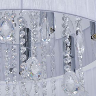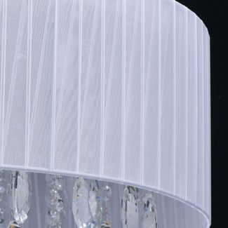 Люстра Жаклин 465015606 — отличный выбор для современного интерьера. Абажур модели выполнен из белоснежной органзы, мягко рассеивающей свет. Декор в виде хрустальных подвесок игриво блестит, переливаясь радужными лучами.<br>