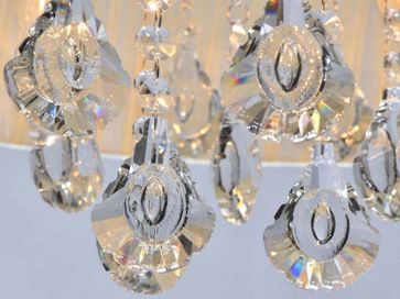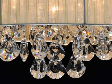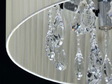 Люстра Жаклин 465016406 — прекрасный вариант для оформления как низких, так и высоких потолков. Абажур, выполненный из органзы, обеспечит мягкое рассеивание света, а хрустальные подвески в виде листочков создадут великолепную игру света.<br>