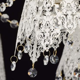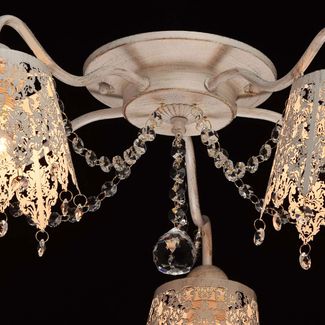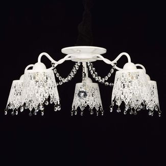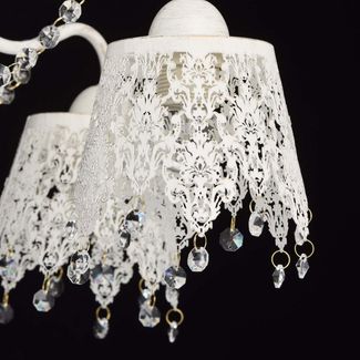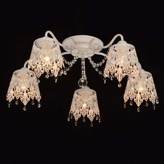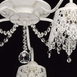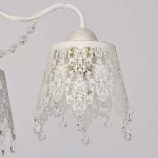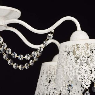 Необычная люстра Полин 472011205 с резным орнаментом плафонов станет изюминкой интерьера. Оригинальное кружево дополнено декоративными подвесами из хрусталя и элегантным металлическим основанием белого цвета.<br>