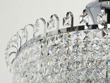 Характеристики: <br> Материал арматуры: металл.<br> Материал плафонов: хрусталь.<br> Диаметр: 500 мм.<br> Площадь освещения: 15 кв. м.<br> Максимальная мощность лампы: 60 W.<br> Подходит для натяжных потолков.<br>