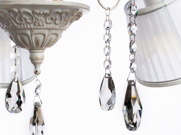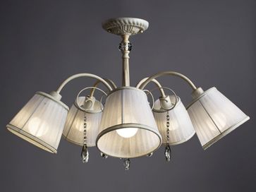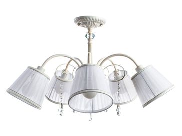 Люстра ALEXIA A9515PL-5WG станет настоящим украшением интерьера в классическом стиле. Основание с эффектом бело-золотой патины дополняют изящные хрустальные подвески и плафоны из полупрозрачной ткани.<br>