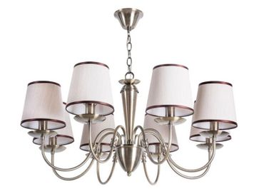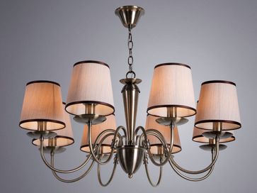 Подвесная люстра FIONA A3227LM-8AB создаст яркий акцент в просторном интерьере с высокими потолками. Тканевые плафоны с контрастными ободками идеально гармонируют с металлическим основанием бронзового цвета.<br>