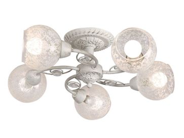 Потолочная люстра CRISTY A5028PL-5WH станет настоящим украшением гостиной в классическом стиле. Особый шарм придают модели прозрачные плафоны с изящным узором.<br>