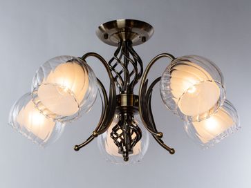 Потолочная люстра DOLCEMENTE A1607PL-5AB станет ярким акцентом в интерьере гостиной. Основание с оригинальным плетением металла оттенка античной бронзы составляет идеальный дуэт с округлыми плафонами из полупрозрачного стекла.<br>