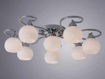 Потолочная люстра MONIKA A6058PL-8CC станет ярким акцентом в интерьере гостиной в классическом или современном стиле благодаря оригинальной форме основания. Круглые плафоны из матового стекла обеспечат в помещении ровный, мягкий свет.<br>