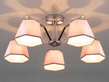 Потолочная люстра Corner 60076/5 — прекрасное решение для создания основного источника освещения в интерьере в современном или неоклассическом стиле. Узнаваемый дизайн тканевых плафонов придает визуальному облику модели элегантности.<br>