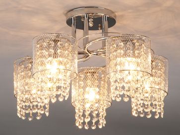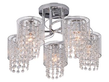 Потолочная люстра 30137/5 станет источником комфортного освещения на кухне или в гостиной, эффектно дополнив интерьер в классическом или современном стиле. Плавные линии основания, плафоны из металлической сетки и очаровательные хрустальные подвески создают элегантный образ модели.<br>