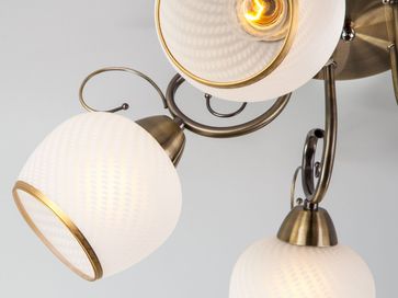 Потолочная люстра 30159/5 станет очаровательным элементом декора классического или современного интерьера и создаст комфортное освещение в гостиной, спальне или на кухне. Стеклянные плафоны с огранкой дополняют изящный облик модели.<br>