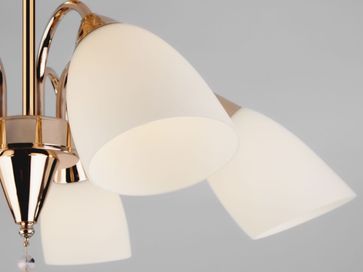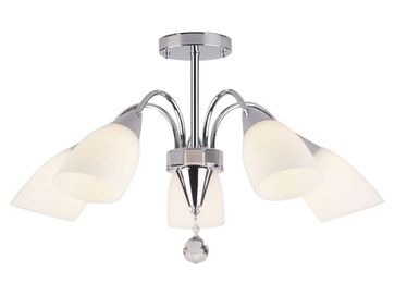Потолочная люстра Ellene 30149/5 украсит гостиную или кухню в современном стиле и создаст комфортное освещение. Визуальный облик модели дополняет декор в виде стеклянной подвески с огранкой.<br>