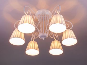 Потолочная люстра Severina 303/6 органично дополнит классический интерьер и подарит комфортное рассеянное освещение. Изящные завитки основания и текстильные абажуры создают элегантный образ модели.<br>